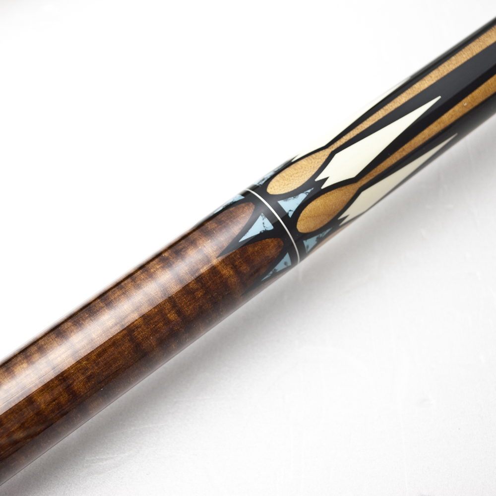 of the cue is made of curly maple stained in four different variations.